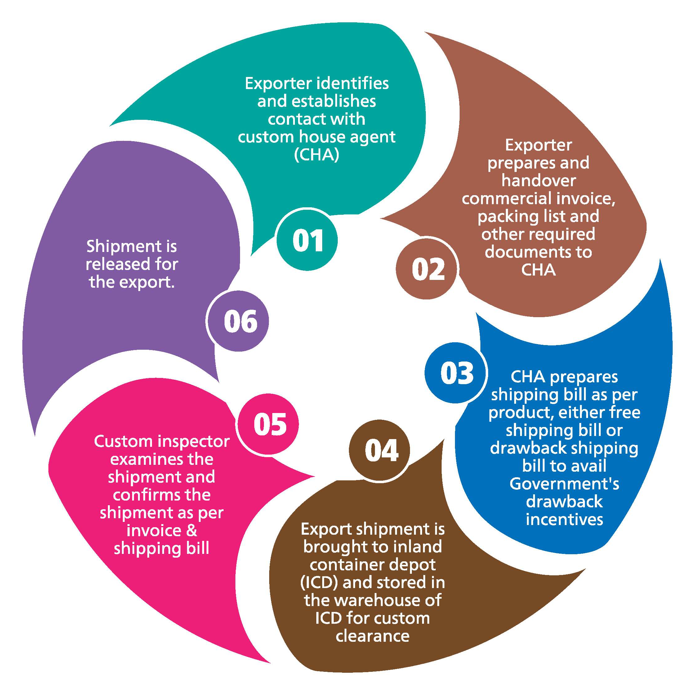 Under the EDI System, declarations in prescribed format are to be filed through the Service Centres of Customs. A checklist is generated for verification of data by the exporter/CHA. After verification, the data is submitted to the System by the Service Centre operator and the System generates a Shipping Bill Number, which is endorsed on the printed checklist and returned to the exporter/CHA. In most of the cases, a Shipping Bill is processed by the system on the basis of declarations made by the exporters without any human intervention. Where the Appraiser Dock (export) orders for samples to be drawn and tested, the Customs Officer may proceed to draw two samples from the consignment and enter the particulars thereof along with details of the testing agency in the ICES/E system.