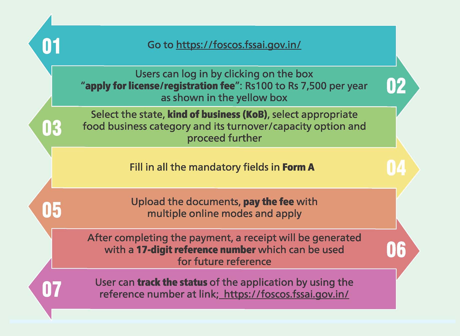 The FSSAI has laid out the science based standards for articles of food and to regulate their manufacture, storage, distribution, sale and import to ensure availability of safe and wholesome food for human consumption. Every food business activity from the wholesaler, manufacturer, distributor to retailer and a petty business operator must register for a food license under Food Safety and Standards Act, 2006. FSSAI has developed a seamless interface called "Food Safety Compliance System (FoSCos)" for registration of different food businesses under FSS Act 2006. A simple and interactive website of the Food Safety Compliance System (FoSCoS) enables the applicant to easily navigate the procedure for filling application for the registration of food business under the FSS Act 2006. The Food Safety Compliance System (FoSCoS) website can be accessed at https: //foscos.fssai.gov.in/