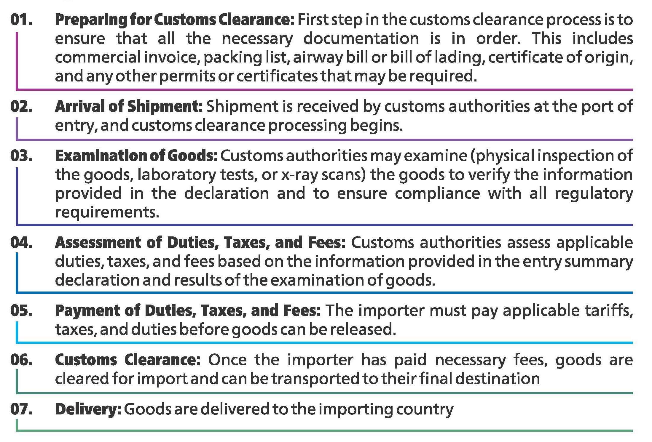 Customs clearance is the process of clearing goods through customs authorities for import or export. It involves a series of documentation, and regulatory requirements that must be followed to ensure compliance with local and international laws. The customs clearance process is to ensure that all applicable import duties and taxes are paid, all necessary documents and contents of the shipment are verified and that goods comply with all relevant regulations. Failure to comply with the necessary customs clearance requirements can result in delays, fines, or even the seizure of goods. Therefore, customs clearance is a critical step in the import and export process that must be followed by all businesses involved in the import and export of goods and services.